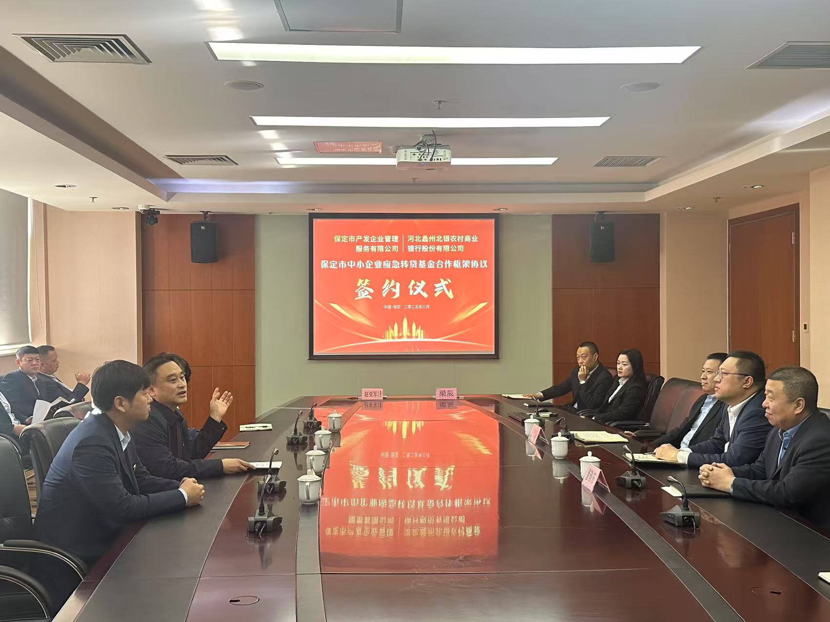 ??3月19日,企服管理公司與河北蠡州北銀農(nóng)村商業(yè)銀行正式簽署《保定市中小企業(yè)應急轉(zhuǎn)貸基金合作框架協(xié)議》。